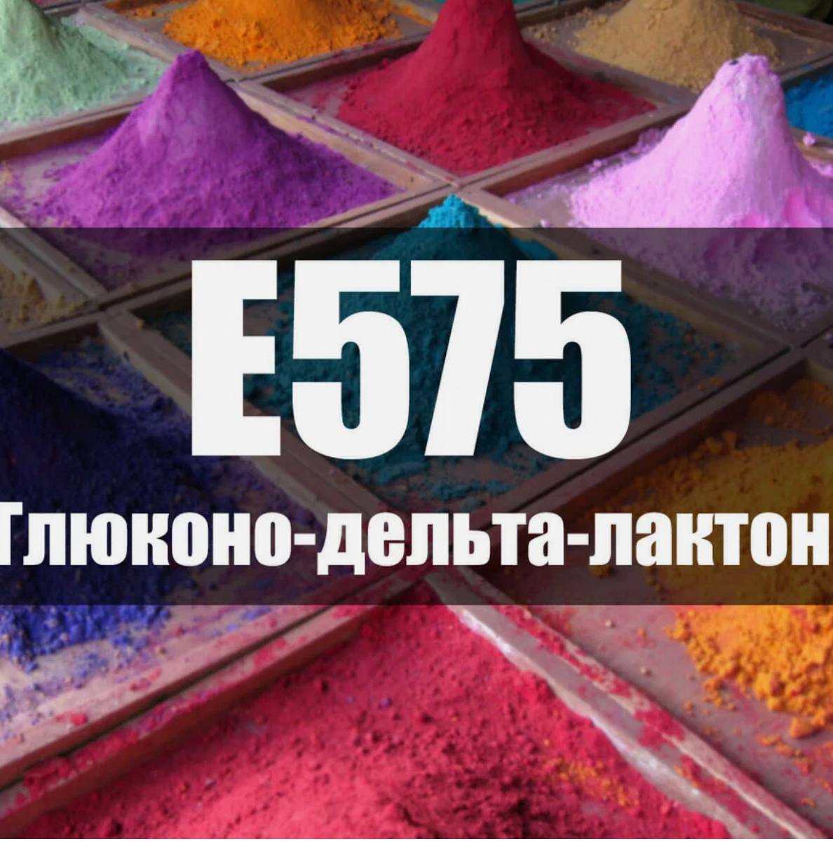 Е575 — это глюконо-дельта-лактон, пищевая добавка. Представляет собой белый кристаллический порошок без запаха и относится к группе пищевых безопасных добавок.