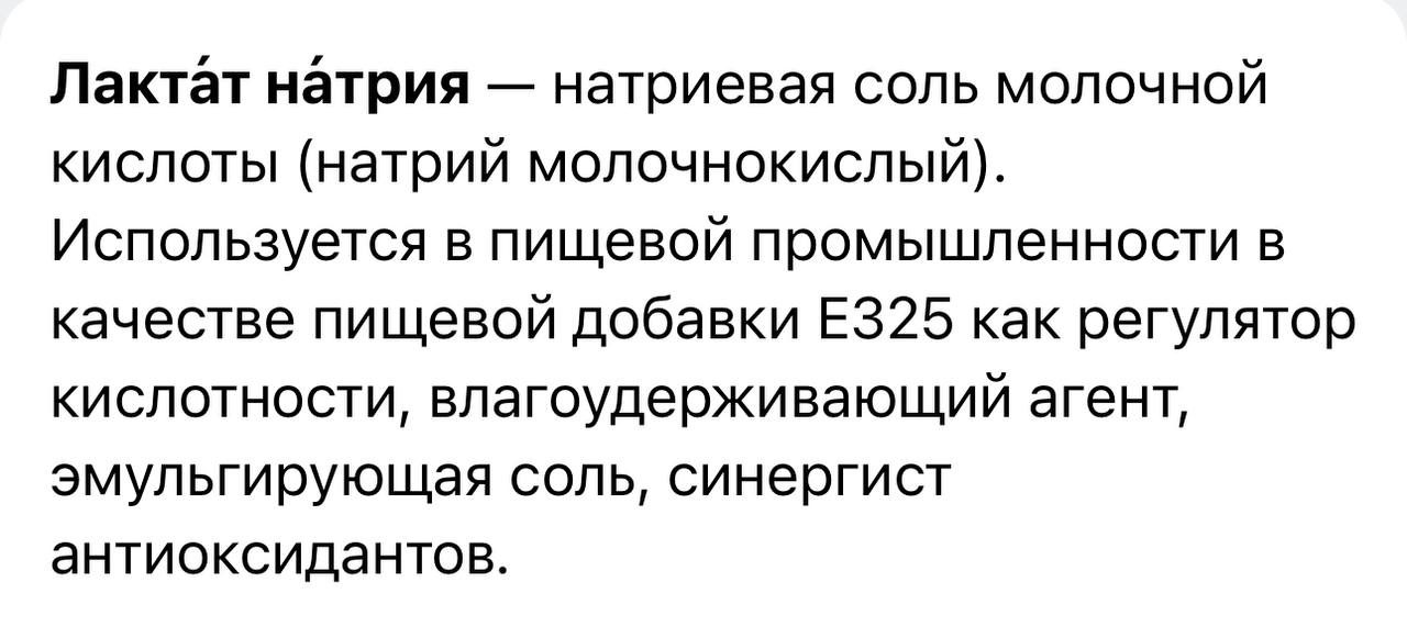 Если же у покупателя есть сомнения относительно безопасности лактата натрия, он всегда может выбрать альтернативный натуральный продукт без стабилизаторов и консервантов.