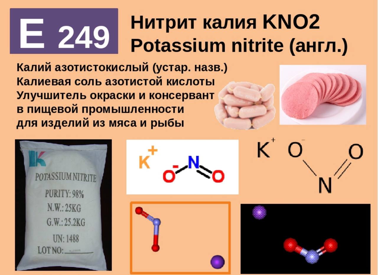Биологической ценности не представляет. Консервант Е249 препятствует образованию ботулотоксина при изготовлении мясных и рыбных продуктов.