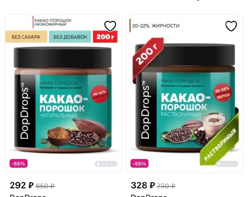 https://www.wildberries.ru/catalog/21051195/detail.aspx?targetUrl=BP&size=53841862 DopDrops Какао порошок натуральный с пониженной жирностью без добавок https://www.wildberries.ru/catalog/21052086/detail.aspx?targetUrl=BP&size=53843990 DopDrops Какао порошок растворимый алкализованный без добавок 200г #какао #шоколад