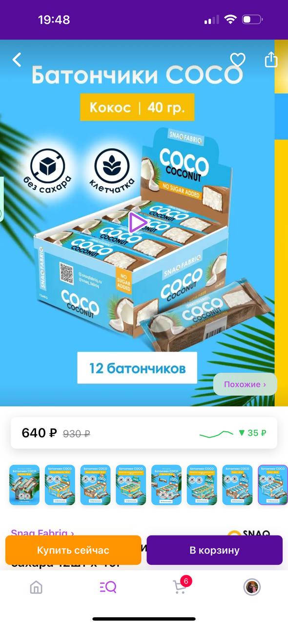https://www.wildberries.ru/catalog/118811605/detail.aspx?targetUrl=MS&size=211095690 Snaq Fabriq Кокосовые батончики COCO без сахара 12шт х 40г