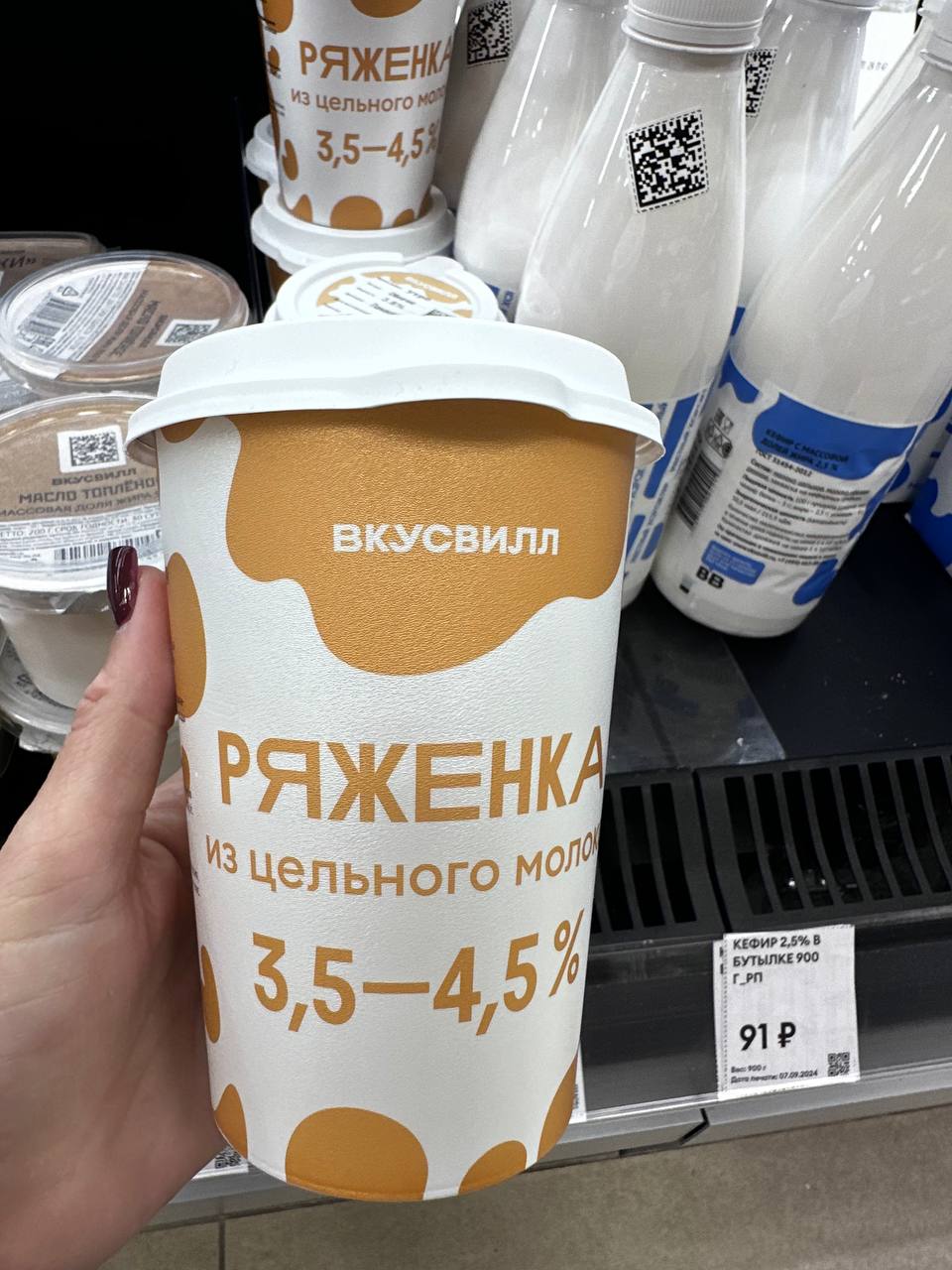 Ряженка Здесь 3.5% ✳️Берём после основного приема пищи 1/2 - 1/3 стакана. Очень вкусная. Вкусвилл #молоко
