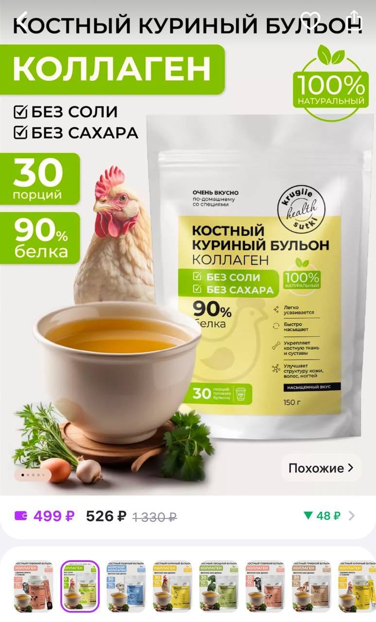 БУЛЬОН ОЧЕНЬ ПОНРАВИЛСЯ! Взяла и другие вкусы Круглые сутки Костный бульон с коллагеном куриный без соли , 150 г https://www.wildberries.ru/catalog/218199459/detail.aspx?targetUrl=GP&size=347421364