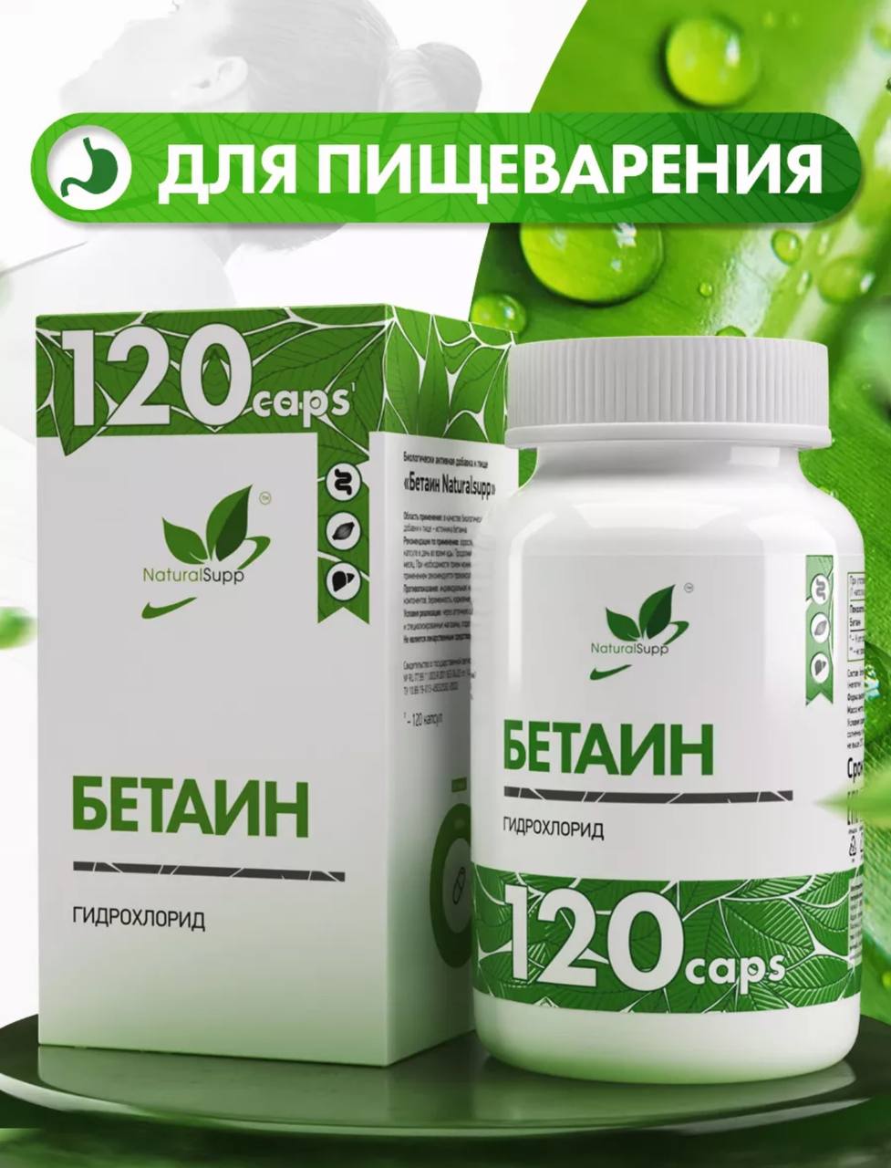 NaturalSupp Бетаин 600 мг ГХЛ БАД Для пищеварения 120 капсул