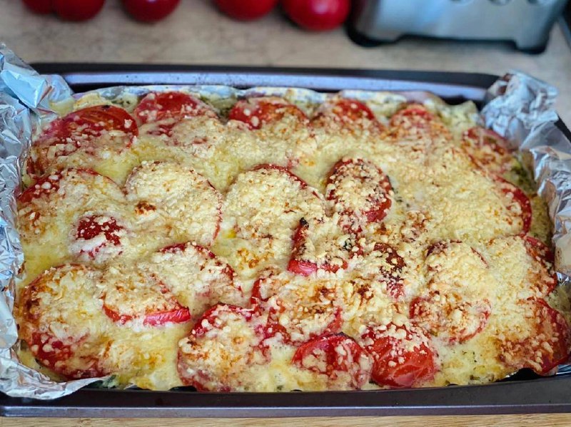 Посыпаем сверху тёртым пармезаном и ещё минут на 5 в духовку, до золотистой корочки.
