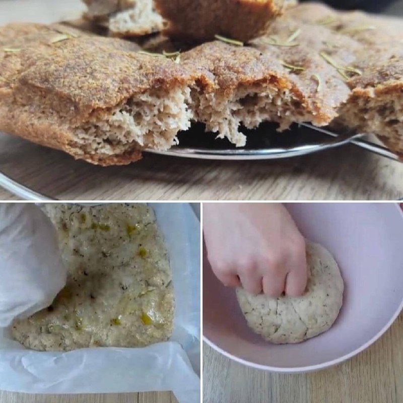 Отстоявшееся тесто разкладываем в форму на пекарную бумагу, не забываем смазать бумагу оливковым маслом. Слой теста 1,5 - 2 см. Делаем в тесте углубления, поливаем сверху маслом. Посыпаем сухим розмарином.