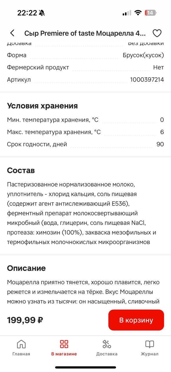 Решила я вчера выбрать сыр в приложении , чтоб не стоять у прилавка не читать. Увидела разрешенный сыр моцарелла. И давай читать состав, каково было мое удивление, когда в составе я вижу Е536, думаю как так? Ольга же его советовала как разрешенный сыр. Тут я полезла в канал с сырами и смотрю, там действительно нет этого компонента. И правда Ольга говорит, что нужно всегда проверять составы, даже тех продуктов, которые вы уже покупаете на постоянной основе. Практически в каждом сыре эта добавка. У нас даже в пятерке или магните хороших сыров по пальцам посчитать и многих фирм/производителей даже и нет🙁