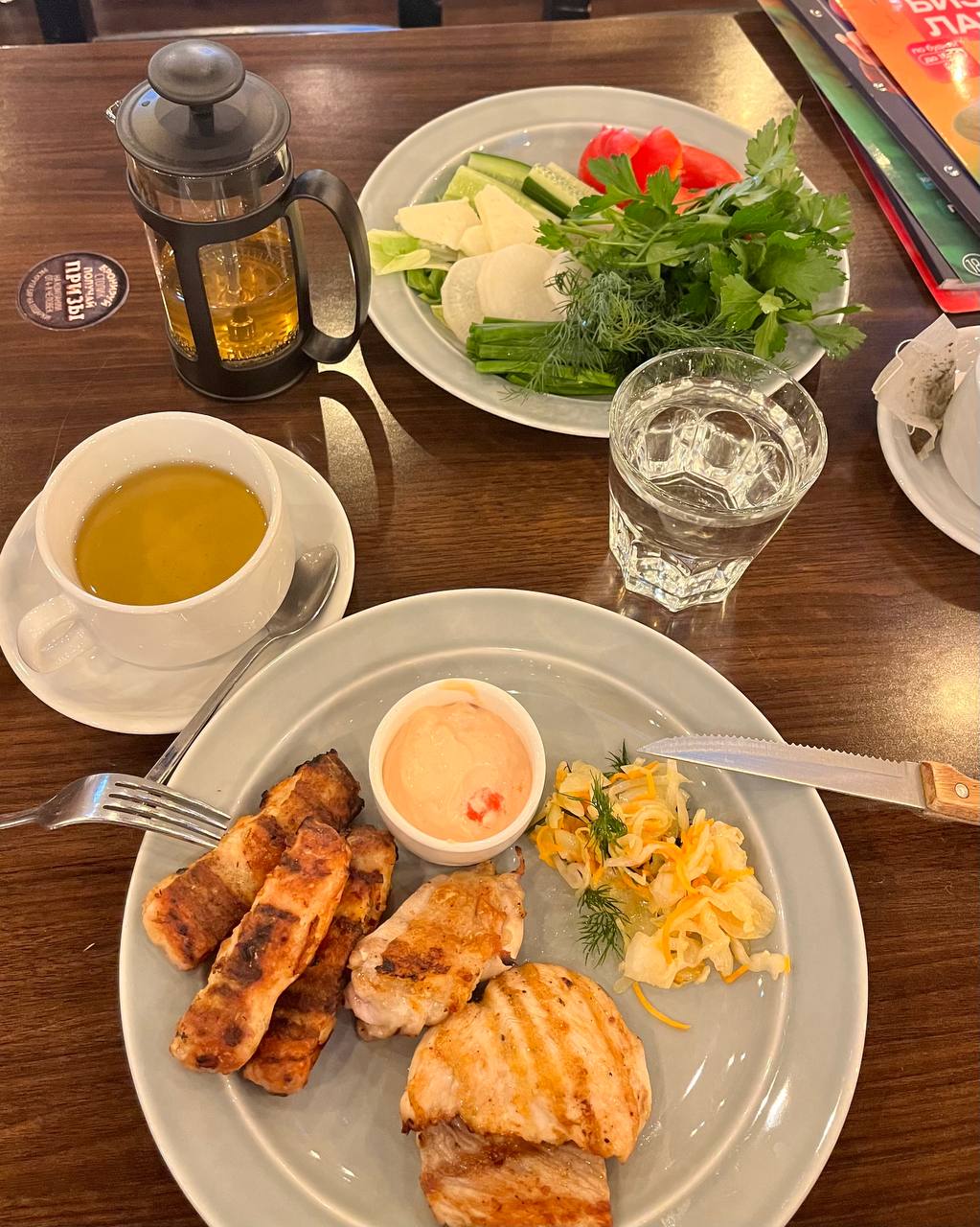 Здравствуйте! Сегодня проходила первое испытание едой вне дома. Резюмирую: не понравилось. Соус я, конечно, не трогала. Мясо было сухим😫 в меню было сало, но отдельно от всяких картох, гренок и соусов мне его нести отказались. теперь боюсь, что голод настигнет меня где нибудь к ночи.