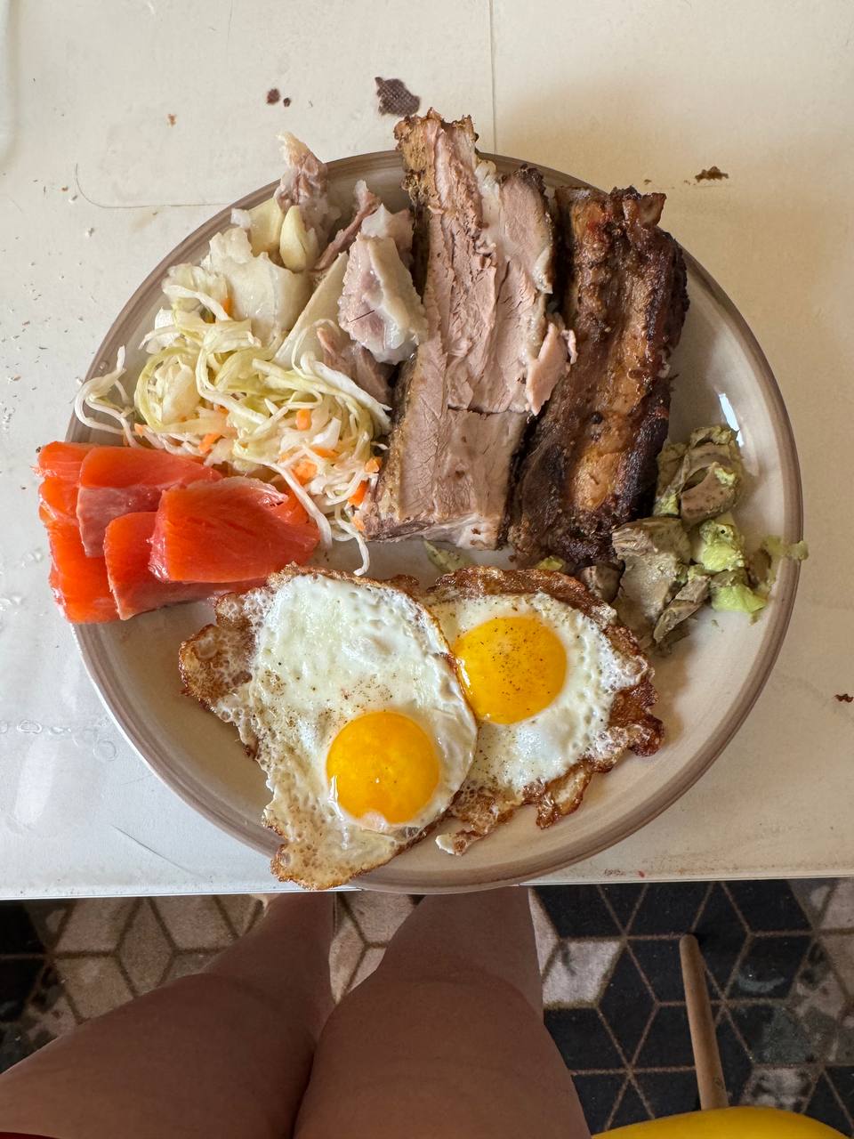 Сегодня ОМАД) грудинка свиная замеченная , холодец домашний из рульки , семга с/с, капуста квашеная, авокадо ) за кадром ЯУ с Боржоми и зеленуха)