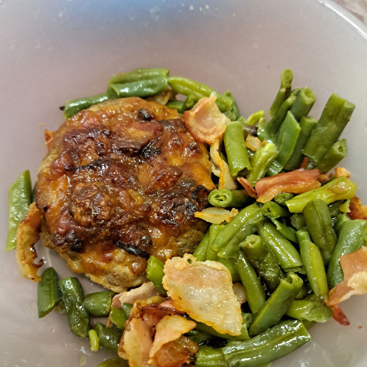 Добрый день! Утром кофе с жирными сливками и масло/сыр, на обед фасоль, жаренная на беконе и кетобургер, плюс салата (огурец, зелень, моцарелла, оливковое масло, дрожжи)+ все бады.😊