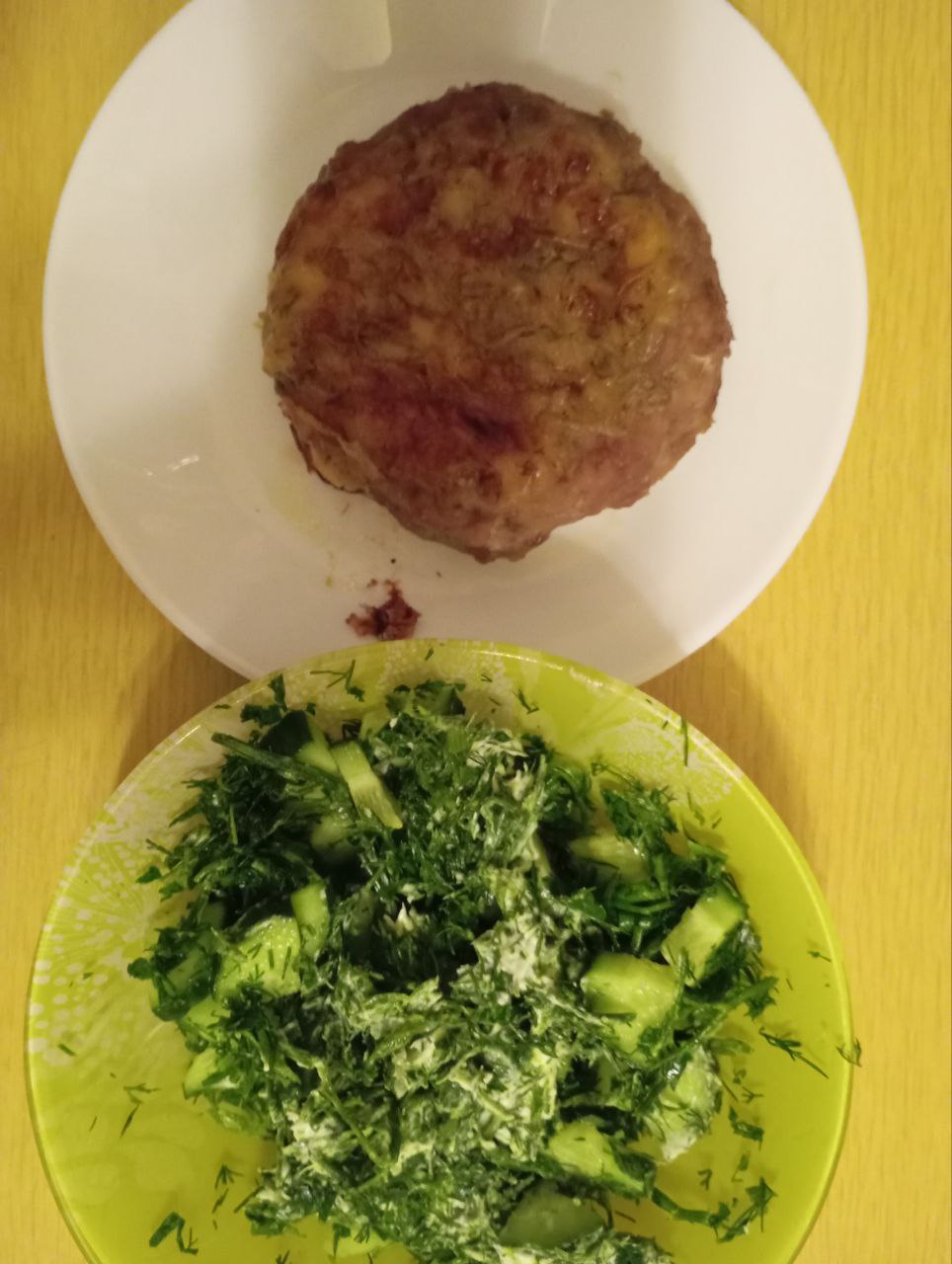 Добрый день! Утром было кофе со сливками. Обед кетобургер как на фото. Ужин кетобуркер и салат огурец измельченная зелень ложка деревенской жирной сметаны. Плюс добавки.
