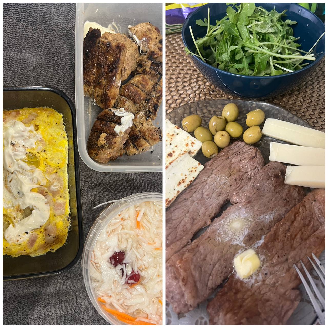 И поздний ужин был в 22:00 говядина с маслом сливочным, сыр из козьего молока и хуллуми , оливки 🫒 и руккола