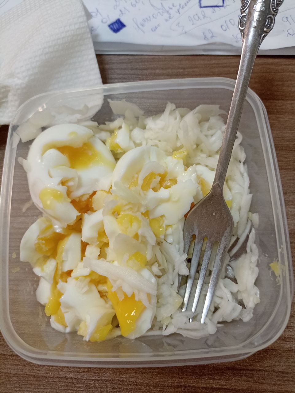 Завтрак 3 яйца и капуста, на обед кето-бургер и огурец в кадр не попал. Думаю может из-за капусты ощущение вздутия?