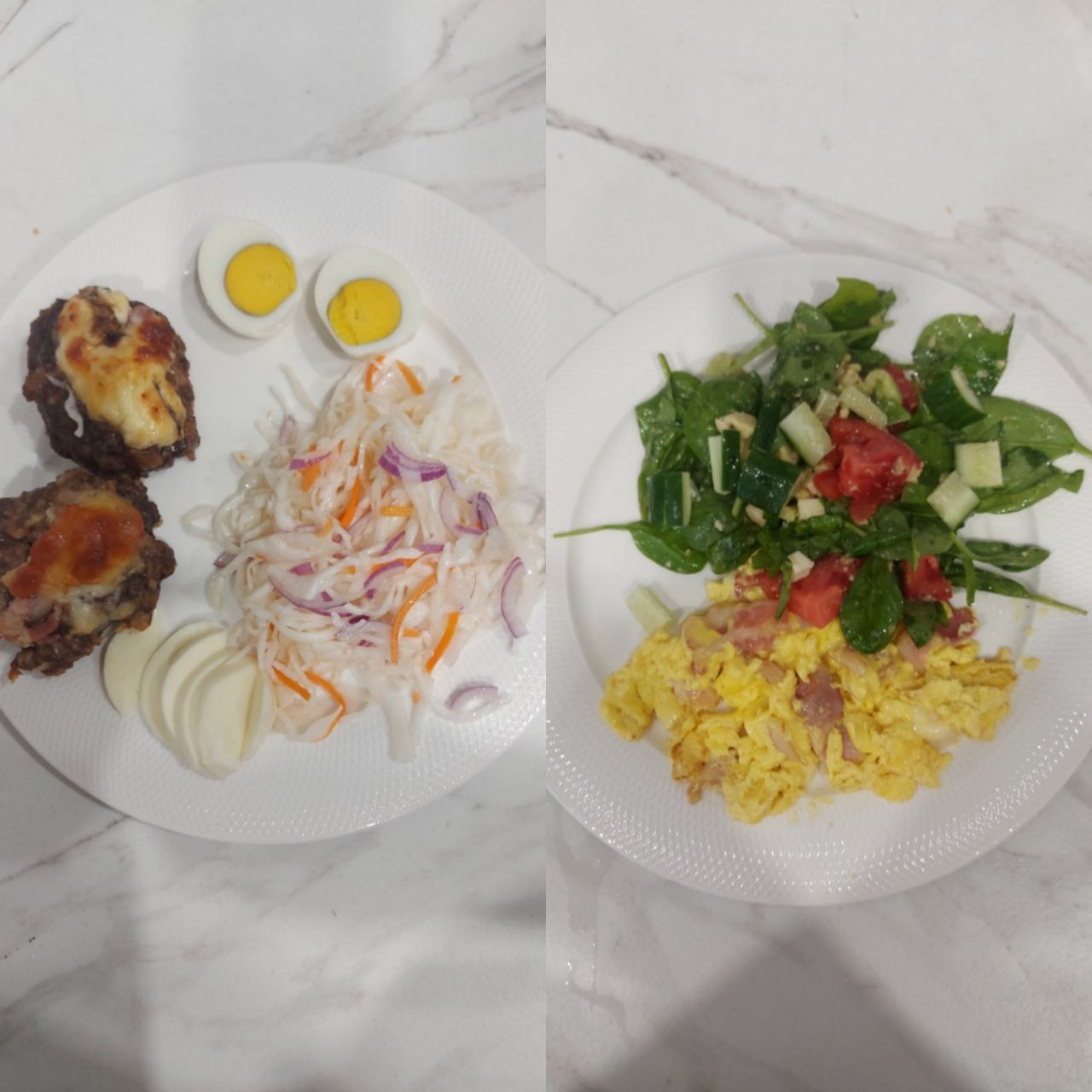 Ужин 17ч15 : бургер мясной согласно рецепта ( маскарпоне, моцаралла, бекон, фарш, яйцо), квашеная капуста без сахара с луком на оливковом масле, яйцо, мацаралла.