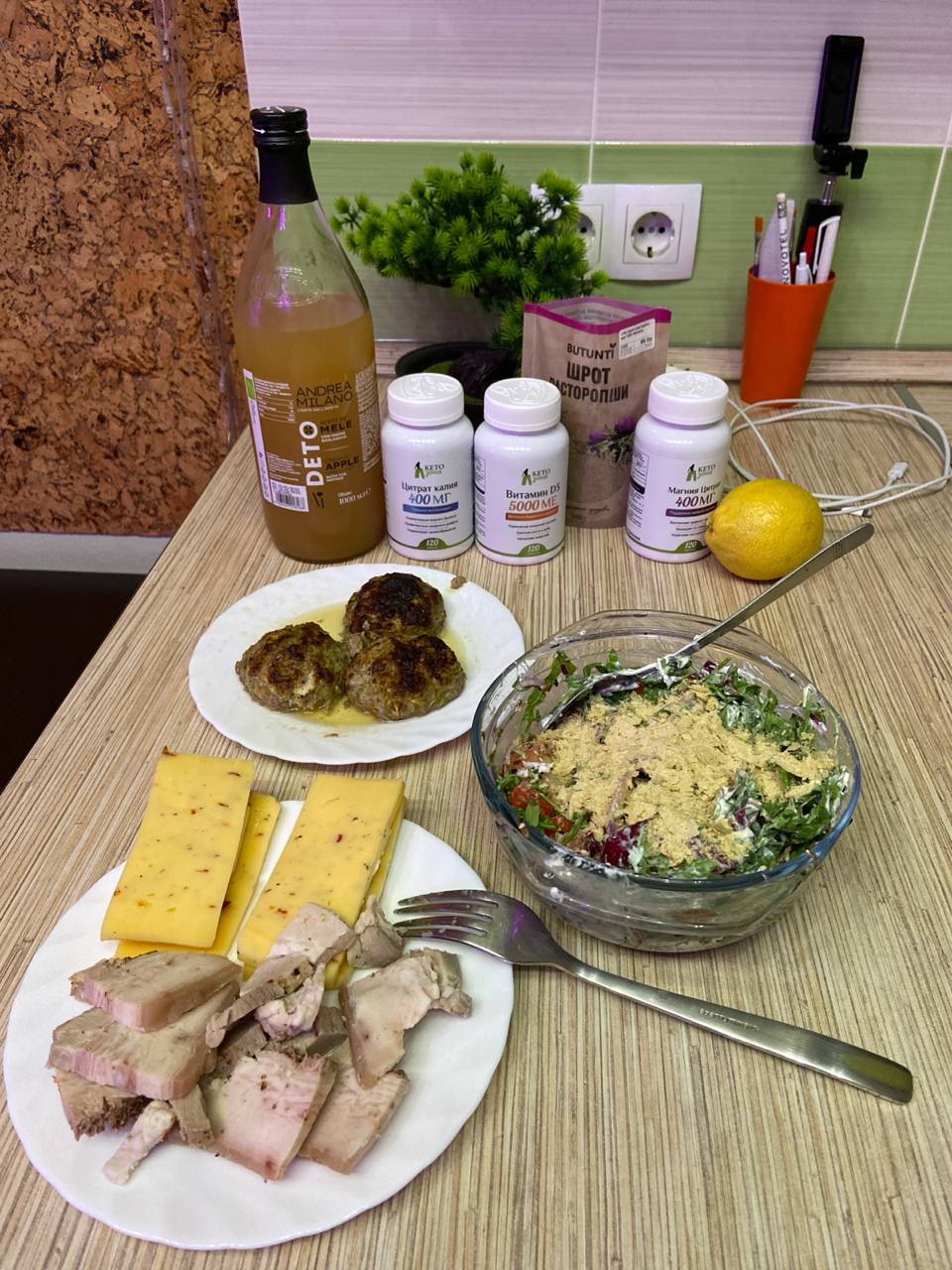 Единственный прием пищи: котлеты фарш свинина+говядина+кабачок, масло-сыр, отварная грудинка, салат руккола +мангольд+0,5 красного лука+0,5 помидора+семена +1ст.л. сметаны 20%+ дрожжи. На десерт черный кофе с лимоном вприкуску. Рано утром натощак полисорб, через 15 мин теплая вода с ЯУ, через 15 мин 2ч.л. расторопши и в течение дня вода с ЯУ( люблю его много лет). Добавки только вечером пришли, начну прием по схеме.