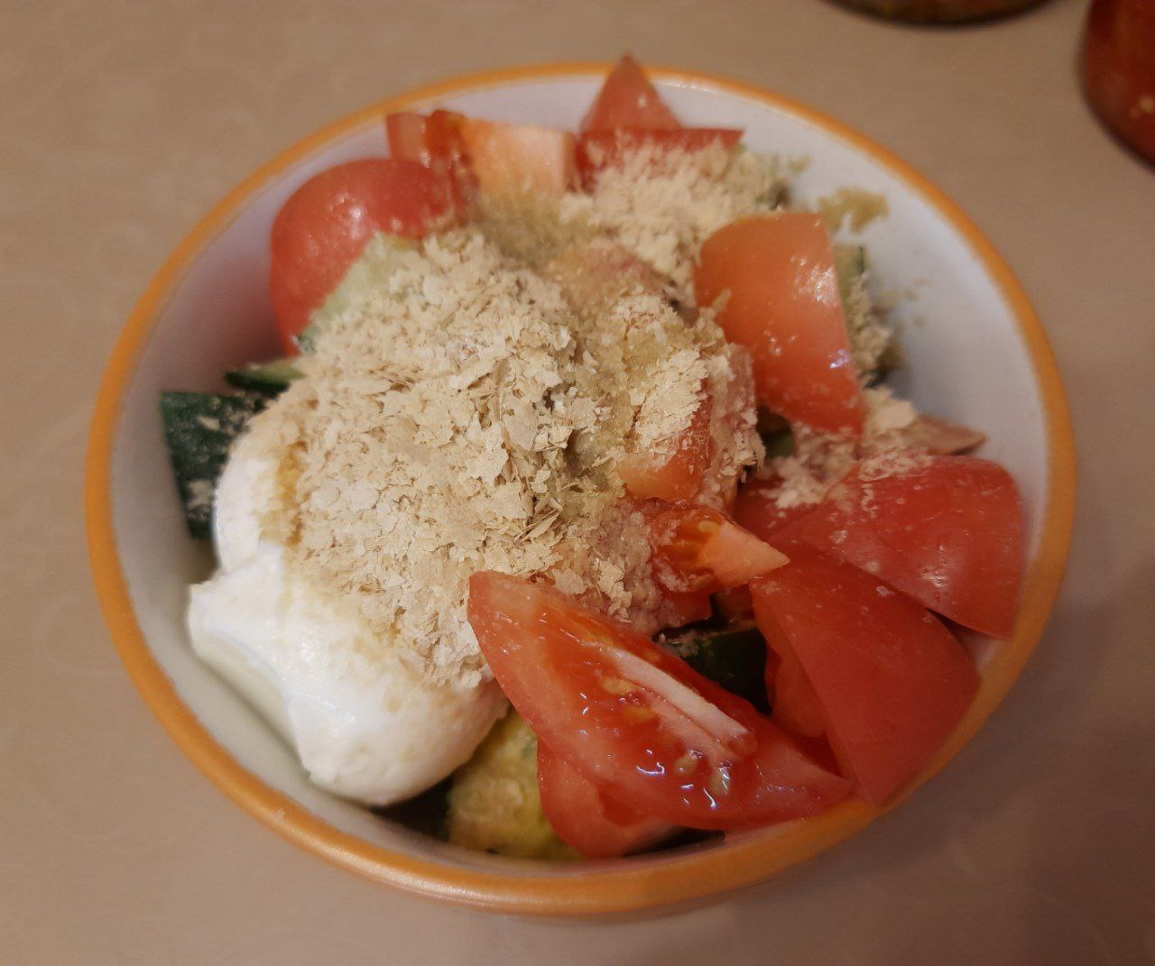 Вечер: яйца, огурец, томат, авокадо, дрожжи, авокадовое масло, соль.