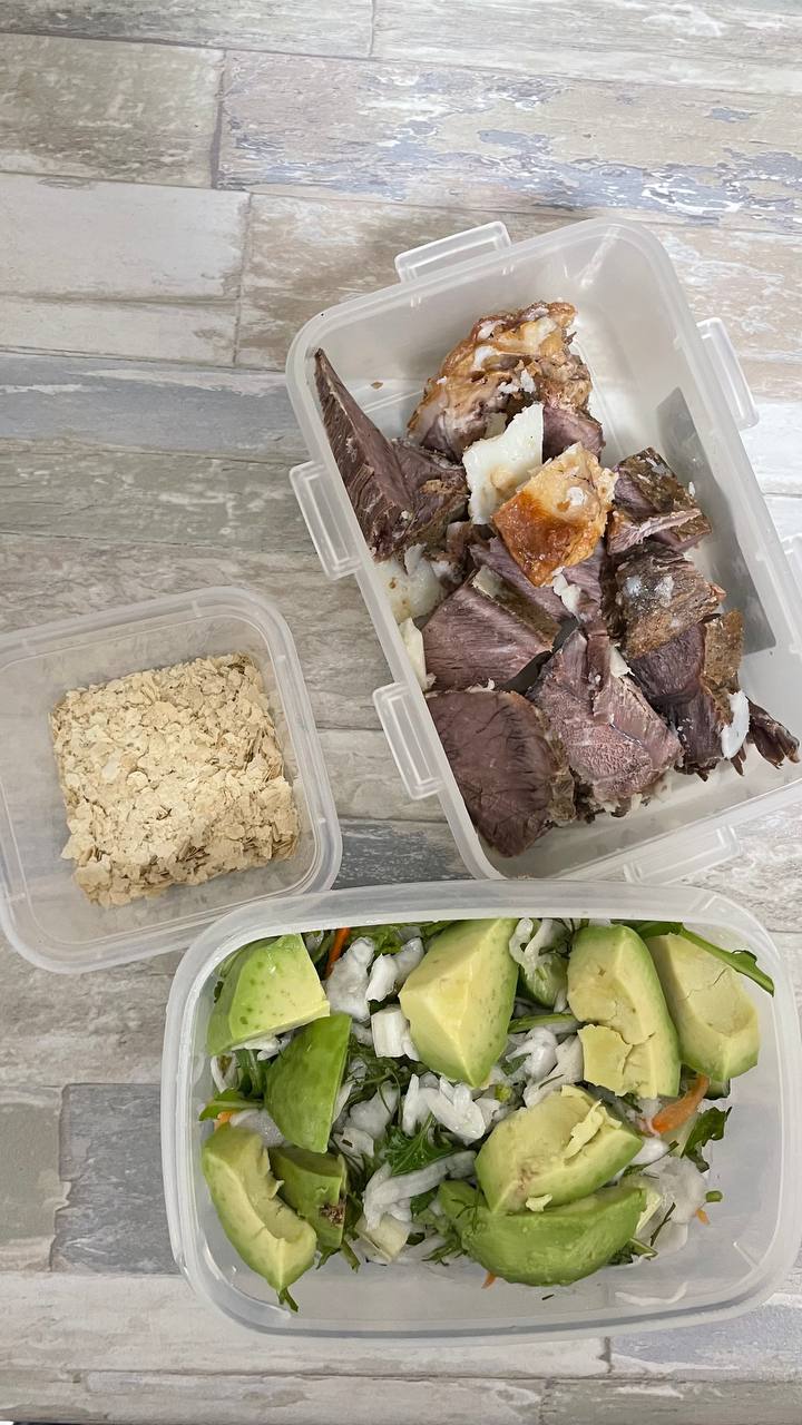 13:30 запеченная в рукаве говядина + салат из рукколы, укропа, петрушки, квашенной капусту, чуть огурца, половинка авокадо. Заправлен оливковым масло + дрожжи.