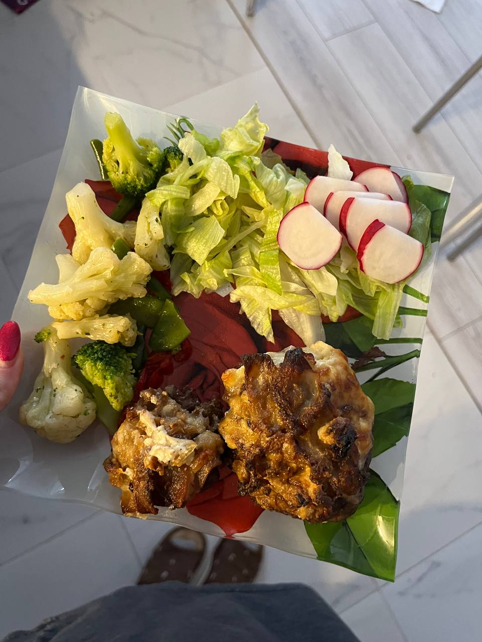 • обед в 12:00 — 1,5 кето-Бургера, овощная смесь, айсберг и редис