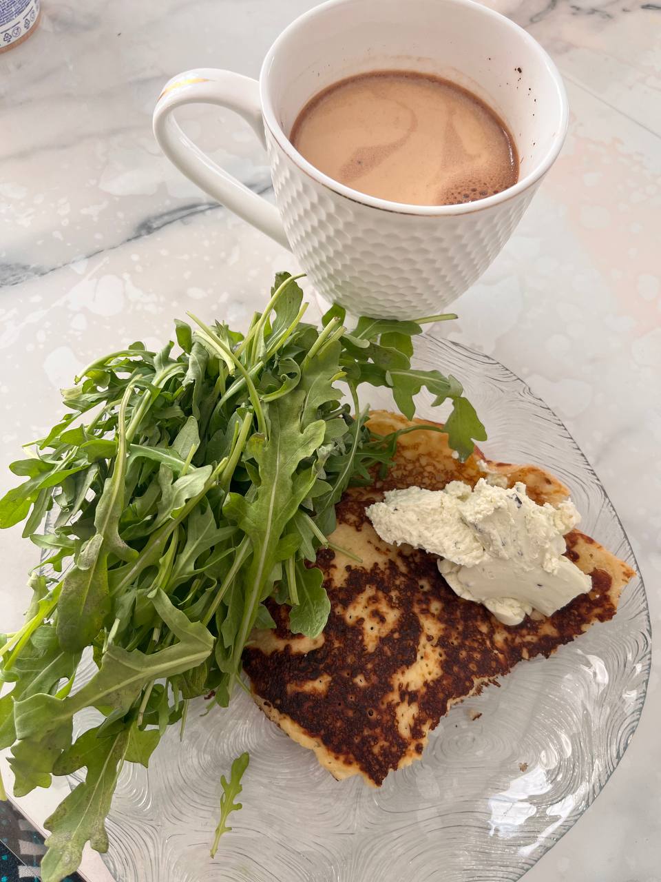 Доброе утро. Вчера: Завтрак 12-00 блины кето на миндальной муке. Творожный сыр, руккола и 3 яйца ( не сфоткала) . 19.40 - ужин индейка тушеная с брюссельской капустой в сливках. Стейк из свинины. Сало