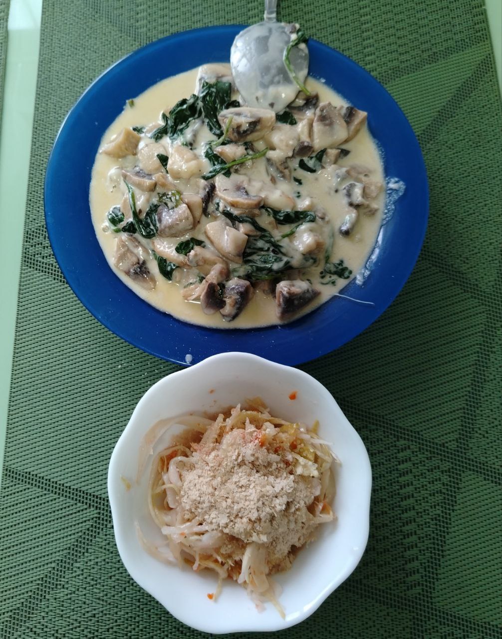 1. С утра шрот, один приём пищи сегодня) был Яу два раза, кофе с сливочным маслом 2 кружки, калий добавки, магний, соль розовая) аппетита нет и голода тож, посмотрим что завтра утром скажет мой организм) на фото по рецепту, только шампиньоны порезала потушила с шпинатом, сметана, сыр, пармезан, и сливочное масло, капуста квашеная и дрожжи.