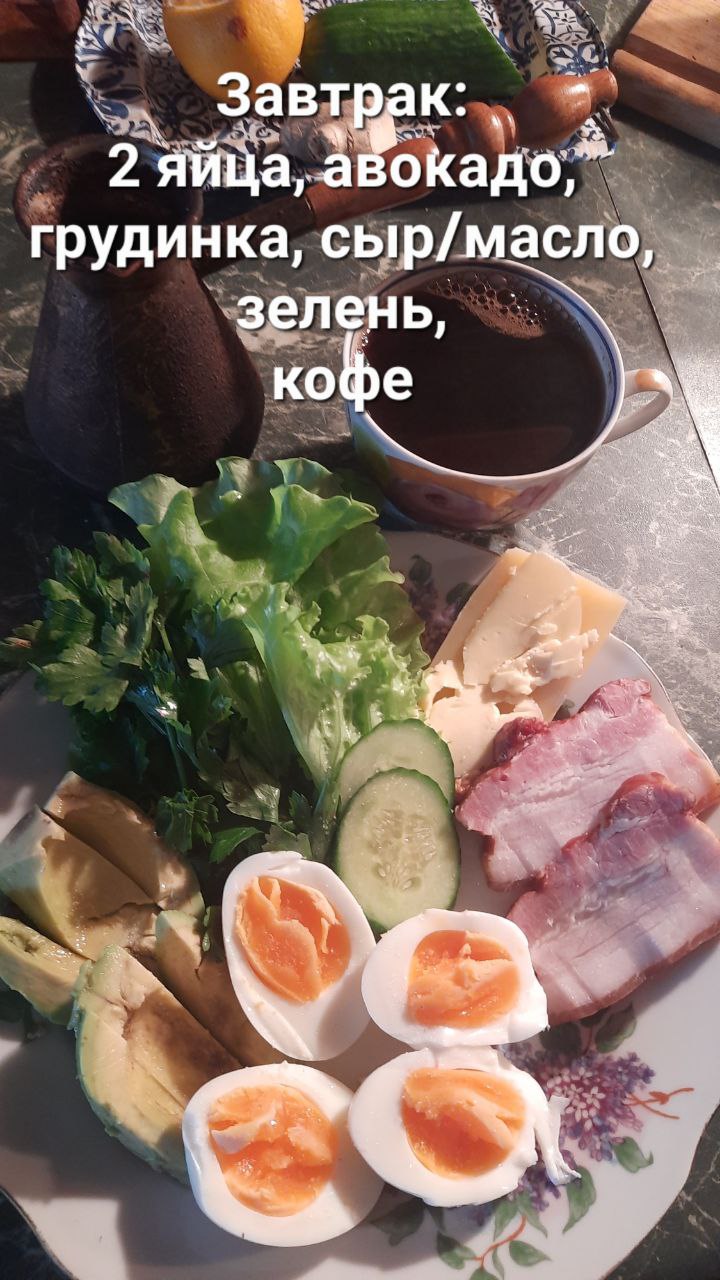 Вчера: завтрак - 2 яйца, грудинка, сыр/масло сл., авокадо, зел.салат, петрушка.