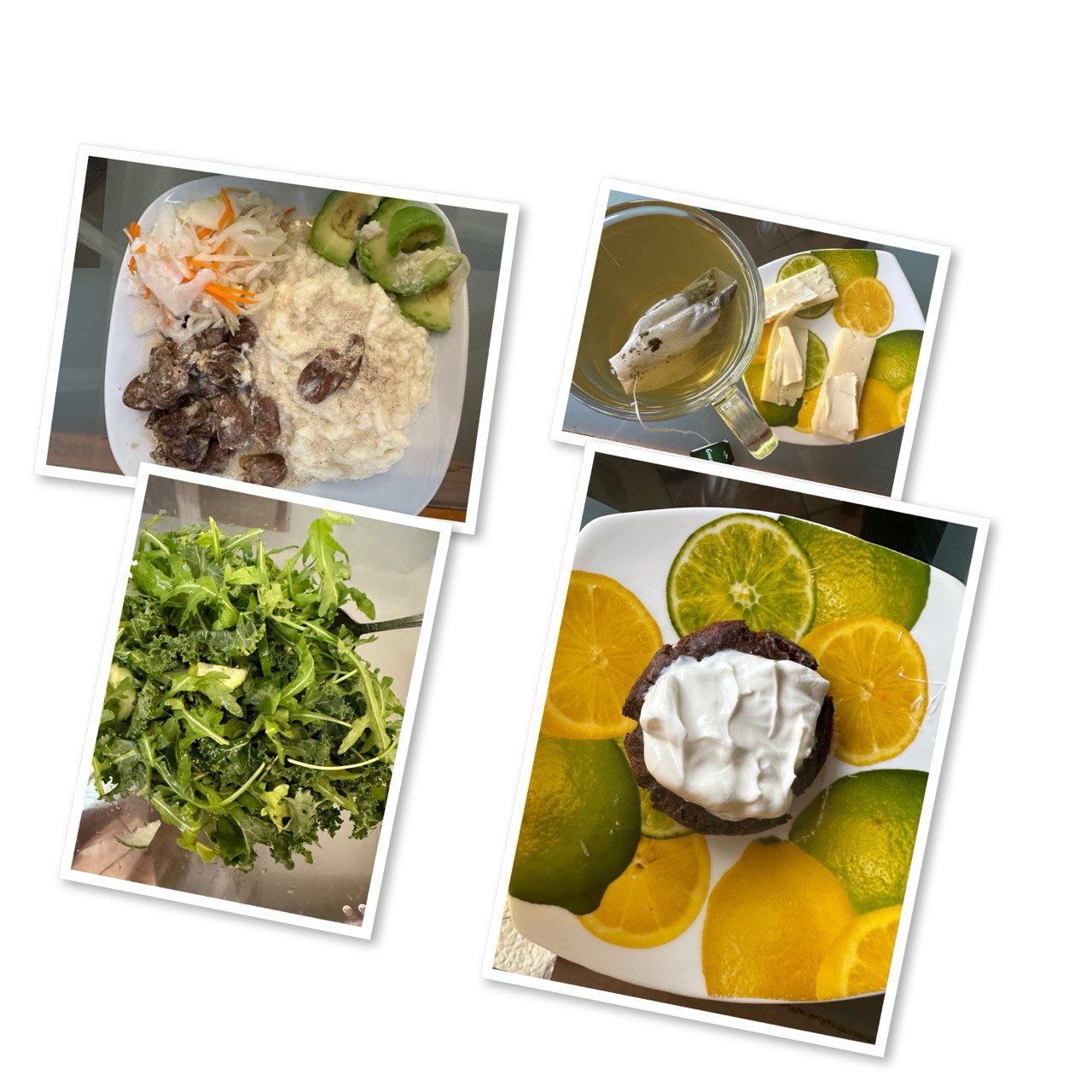 Добрый вечер!Утро шрот,ЯУ,Бронекофе+ БАДы по графику. 1)12.30 -Зеленый чай +сыр+слив.масло.Кето печенье +2 ч.л.сметаны-30%. В перерывах МВ-бронекофе. 2).17.30-Пюре цв.капусты+курин.сердечки-в сливках-33%,авокадо-квашен.капуста +микс зелень+дрожжи.ЯУ с МВ-на ночь остальные БАДЫ по списку.