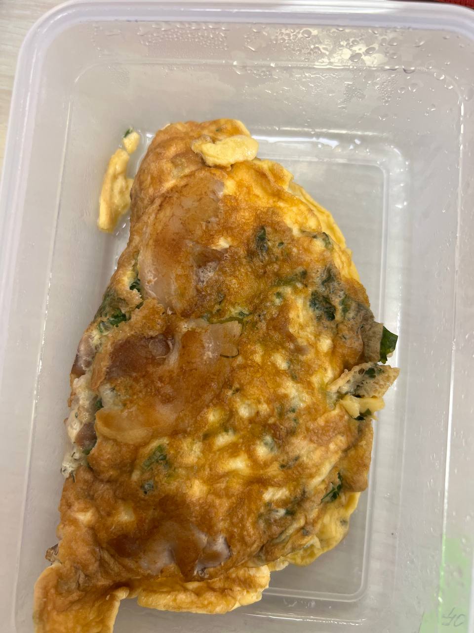 Завтрак: омлет с беконом (внутри), сыром, зеленью.