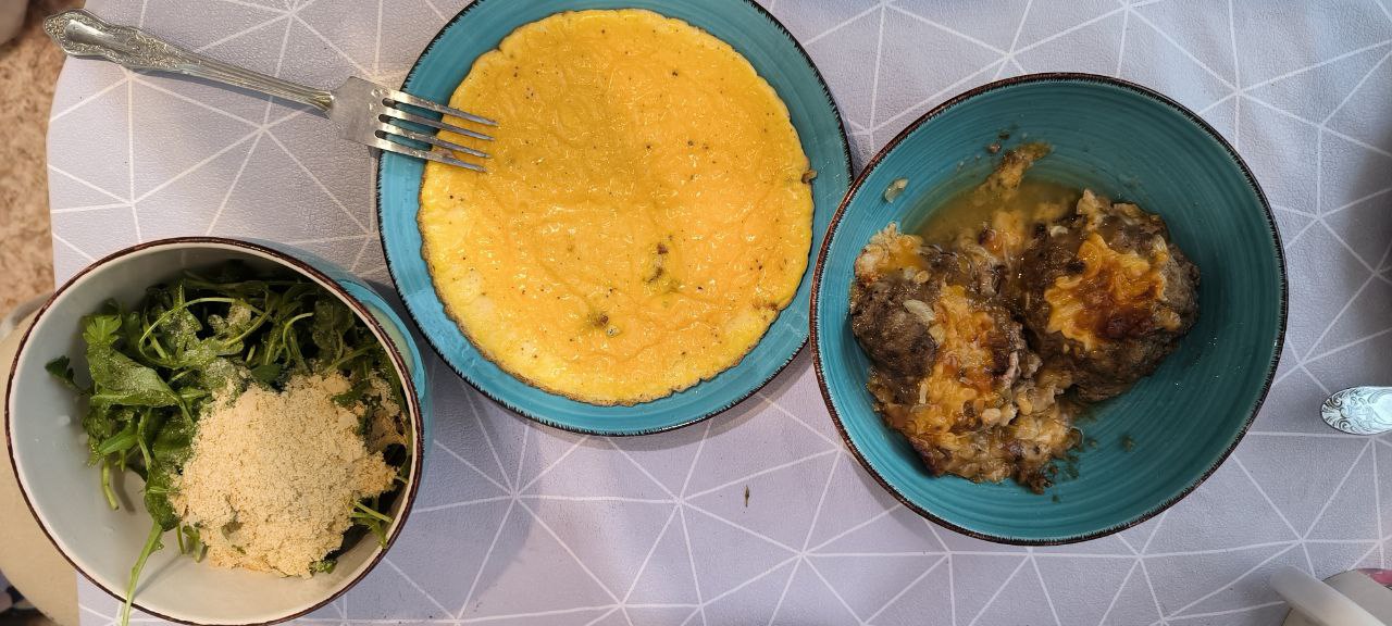 Омлет из 2 яиц с кокосовым молоком на сале домашнем,2 кетобургера(выглядят не очень))),руккола с дрожжами и ОМ.Скорее всего омад будет.ВОПРОС: если я сейчас поем и убегу в кино, можно там разрешенные мясные чипсы погрызть не зажирняясь дополнительно?