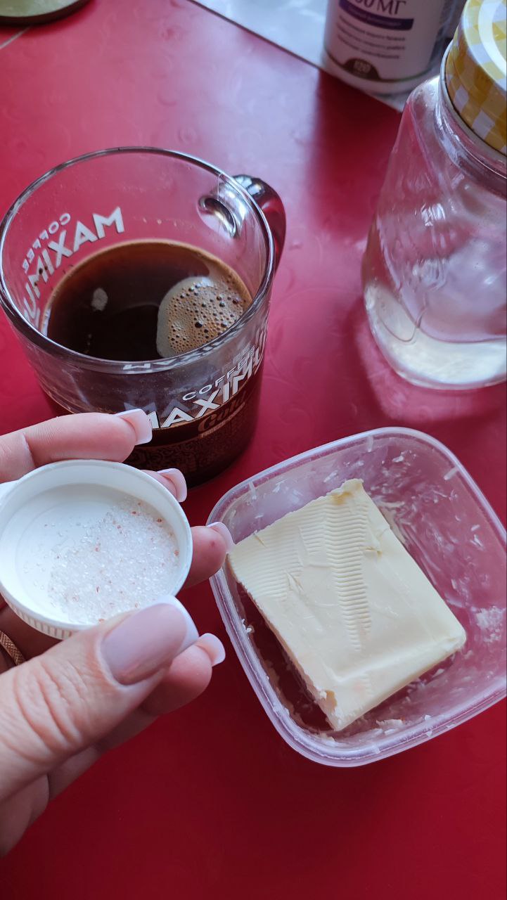 Утро: кофе молотый, слив масло, соль.