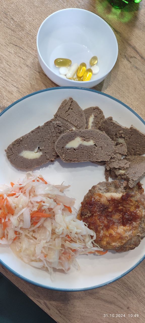 Рулет печёночный со сливочным маслом, кето бургер, квашеная капуста и хачапури по Олиному рецепту(забыла сфоткать). Это утром