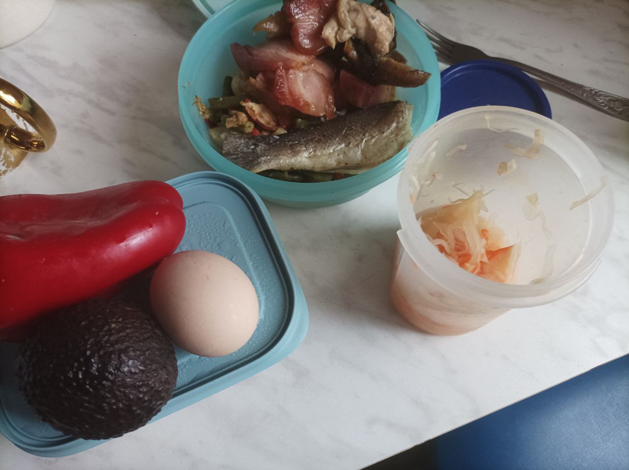 Добрый вечер. Сегодня утром кофе. ( Без ничего). В 14 часов фасулье на гхи, грудинка приправленная гхи, перец красный...яйцо . 😊 Все жирненько . Еле съела. На ужин 19-30 салат из зелени , огурца и зелёной редьки ..салат приправден сметана30 %. Авокадо. И запечённый сибас ( один кусок). Десерт - небольшой кусочек камамбер. . Все добавки ,витамины пью . В течение дня яу с минеральной водой . И розовой солью .