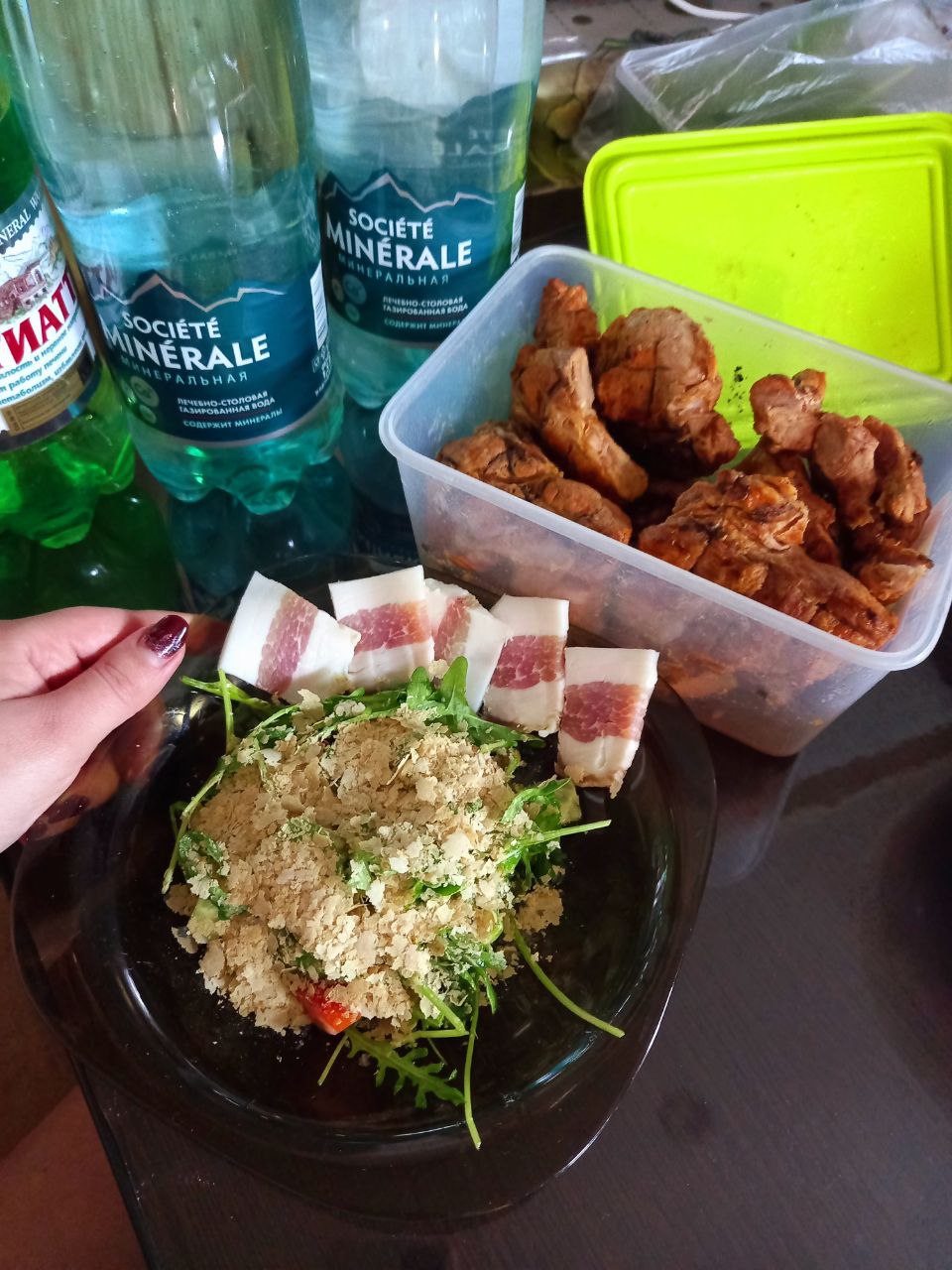 Были на дачке, жарили шашлык и вот только приехали домой.