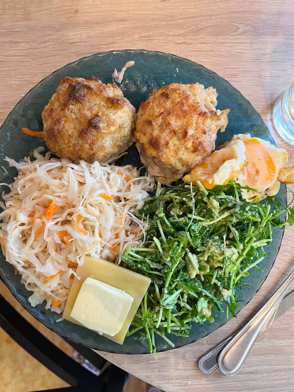 Кетобургеры, два желтка, микрозелень (60гр) + авокадо, дрожжи, ом и яу, домашняя квашеная капуста, выдержанный сыр с маслом. На кето 5 мес (омад), с марафоном решила чистые приемы без десертов практиковать ❤️