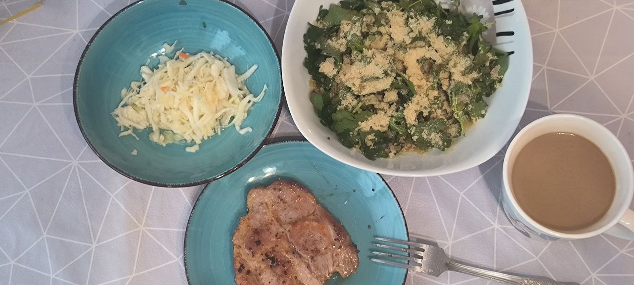 ЯУ уже во мне.Стейк свиной ,капуста,зеленуха с ОМ и дрожжами.А как петрушка пахнееееет,ммммм, кто бы знал,что мне так вкусно будет😂.Всем приятного аппетита,у кого прием пищи)