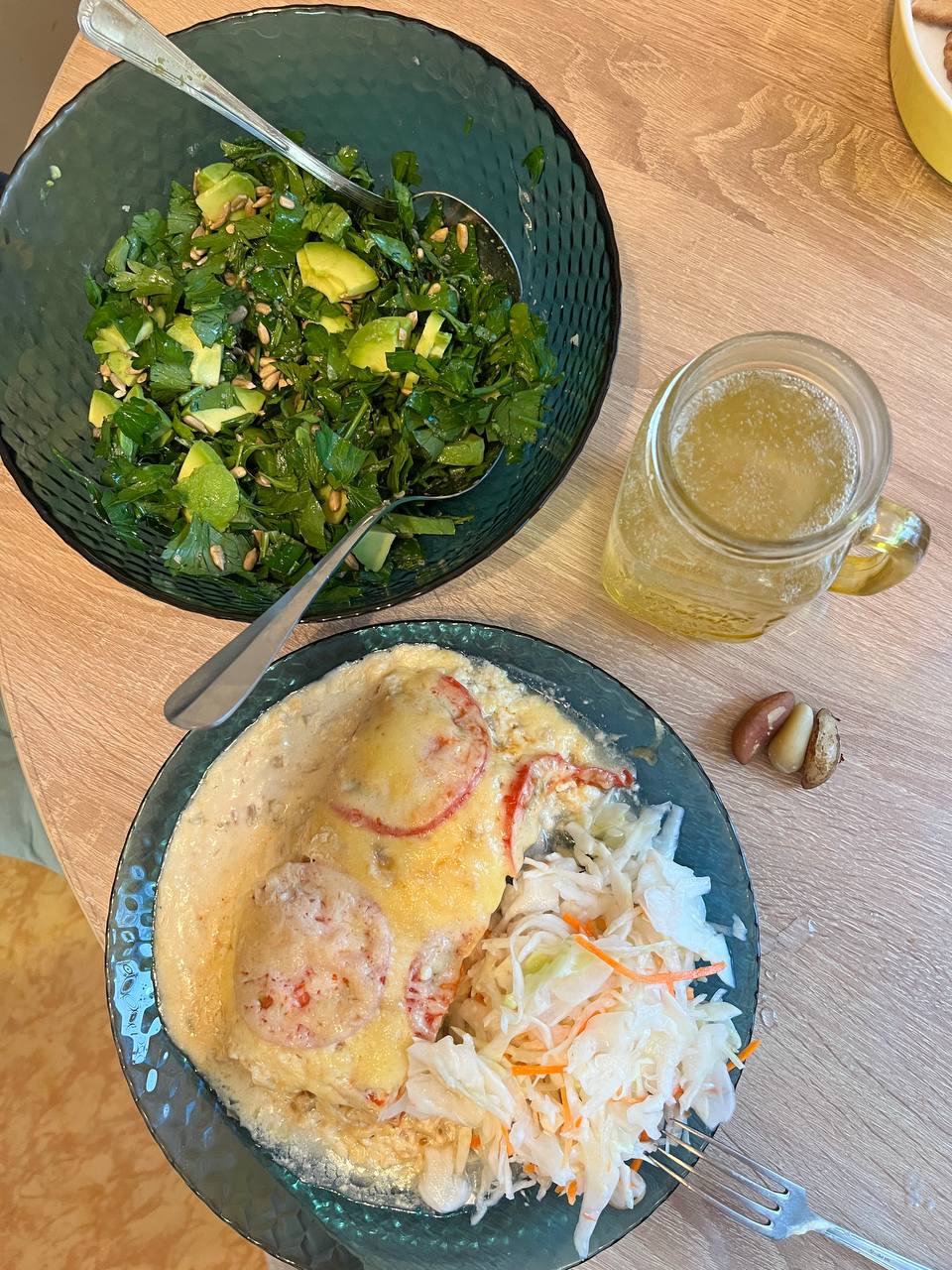 Омад: 100гр петрушки+дрожжи, ом, яу, розовая соль, авокадо, семечки. Рыба по рецепту Ольги, квашеная капуста. Бразильские орешки, кетопросекко. Все электролиты и шрот по плану.