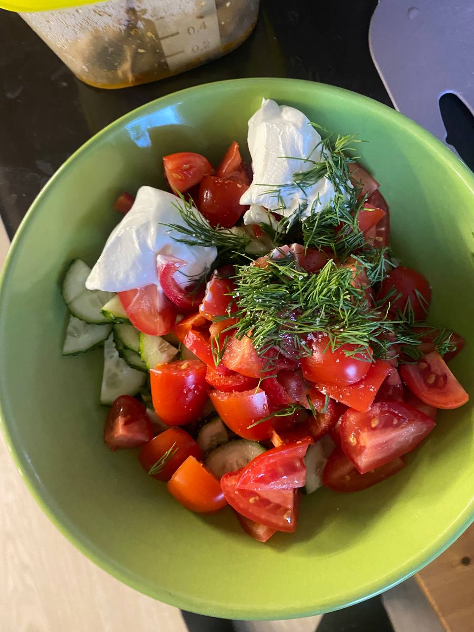 Добрый день. Вчера не успела отправить тарелочки. 1: куриные крылья и салат + кофе со сливками 2: сало, микрозелень, сыр, голени запеченные, десерт (шоколадный трайфл)