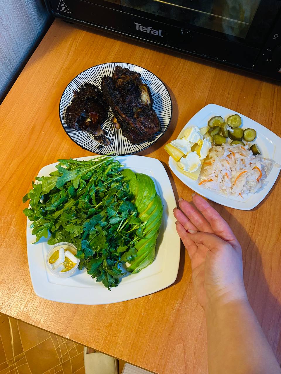 Авокадо, кинза, руколла