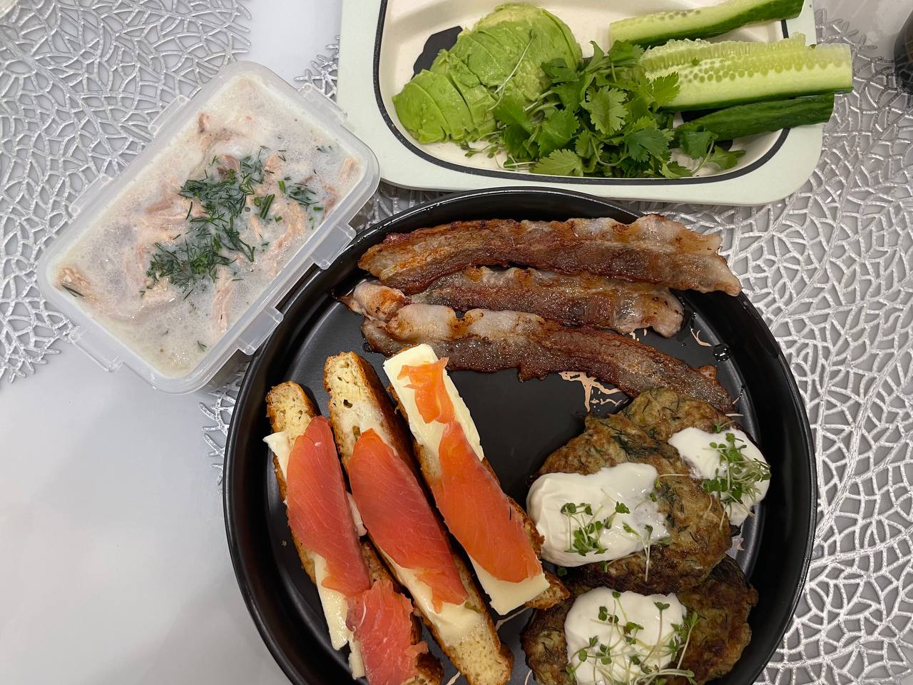 3 бутерброда ( Кето хлеб + масло + форель соленая )