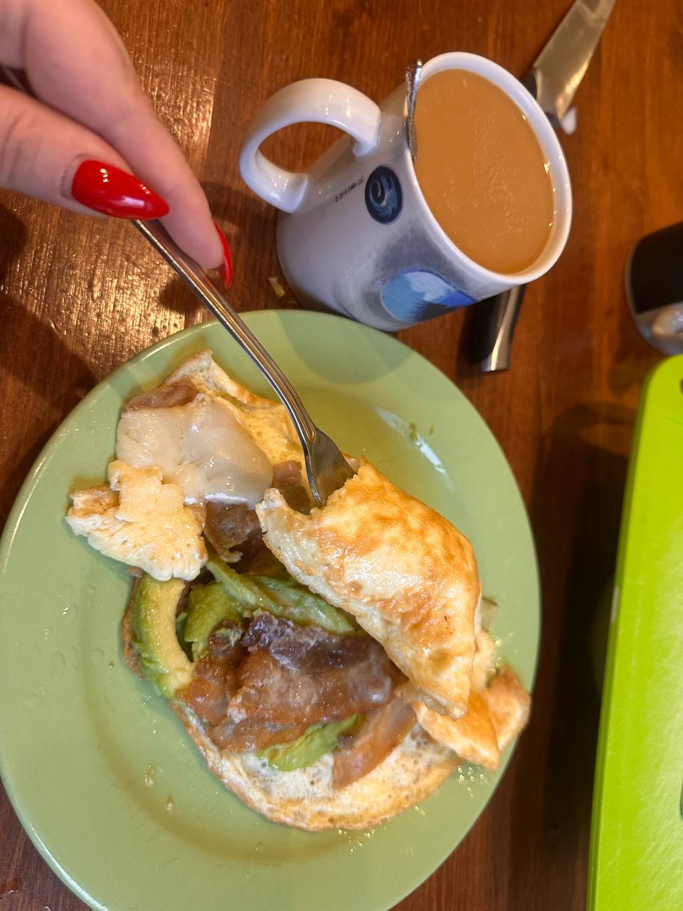 С утра кофе с 3 ст.л жирных сливок, в 11.00 омлет по рецепту марафона (два яйца, бекон, авокадо, пара кусков сыра пармезан), в 15.30 кетобургер на кокосовом масле плюс салат огурцы, помидоры, зелень, заправлен оливковым маслом; в 20.00 тоже самое, что и в 15.30. плюс в течении дня вода. Добавки начну пить завтра.