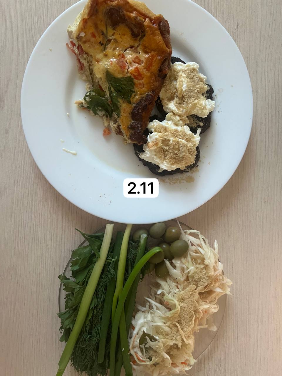 Мой вчерашний омад: запеченый омлет (половина) из четырех яиц со сливками, с жареным беконом, сливочным маслом, перцем и томатом. Две печеночных олашки, с творожным сыром, чесноком. Зелень, оливки, капуста. Дрожжи, добавки, яу, шрот пью. Вчера была на мероприятии и даже оливку не взяла, хамон и сыр тоже были перед глазами, машинально рука хотела потянуться, но я не хотела есть и достаточно легко себя удержала)