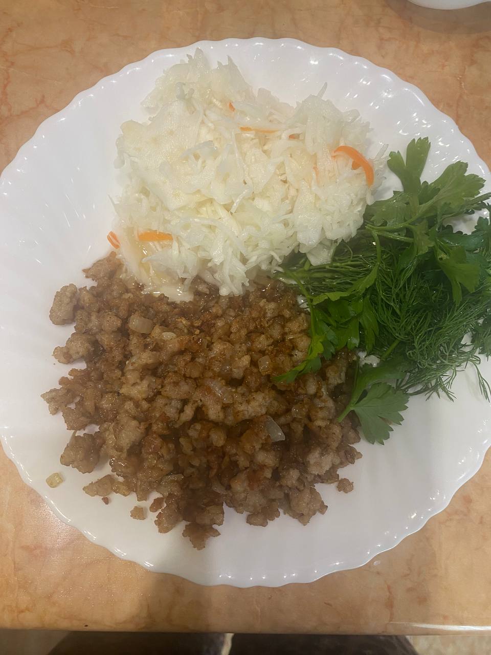 Здравствуйте! 🌹 Обед мясо ,,Минутка», квашеная капуста, зелень. Ужин будет омлет с зеленью и цветной капустой. Добавки допью свои, потом закажу в Кетозоне)