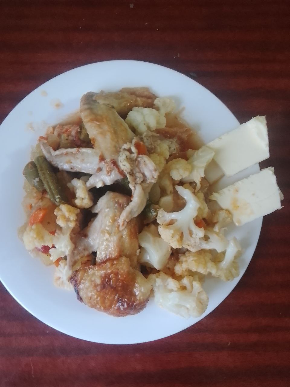 Добрый день, на завтрак в час :масло,сыр, свинина, 2 яйца, укроп и квашеная капуста. Обед: куриные крылышки, масло,сыр, цв.капуста, кабачок, зелёная фасоль. + 2 чашки черного кофе. Добавки,уксус принимаю