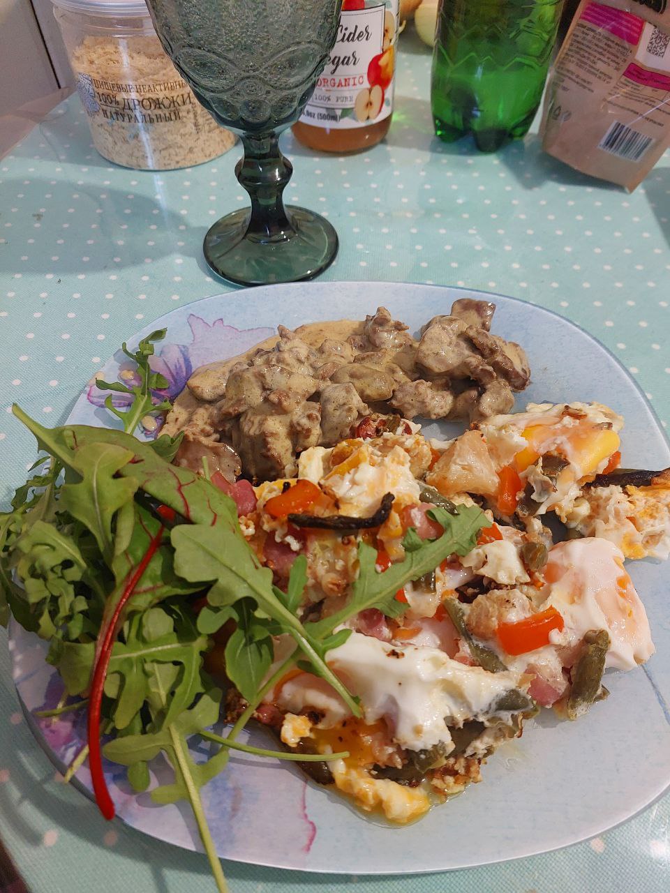 Добрый вечер,на завтрак(сегодня 13.00) яичница с беконом,перцем болг.,цв.капуста,стручкова фасоль,печень со сливками,за кадром квашеная капуста .Про сливки сегодня уже прочла позже.Ну и зелень.Ужинать не хотелось ,но муж питается со мной уже неделю,пришлось его кормить ,решила сама тоже поцжинать😁Печень жареная,капуста цветная,фасоль,капуста квашеная ,зелень и дрожжи.Яу до и после еды.
