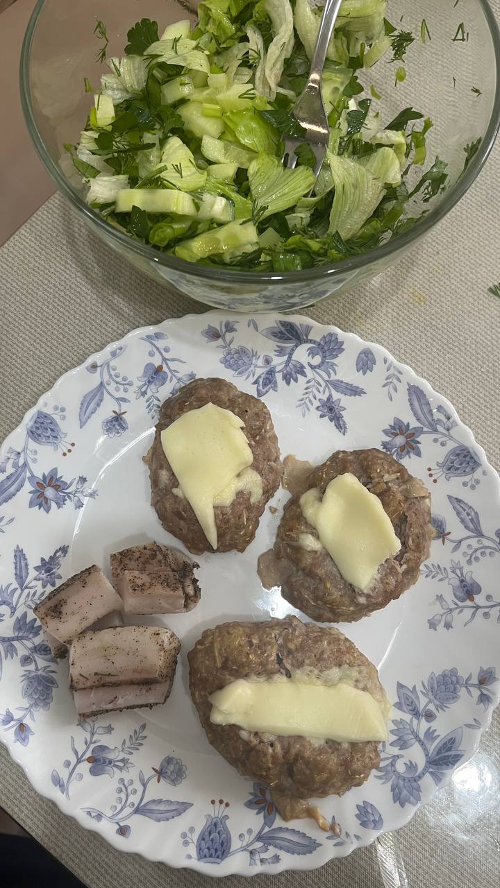 Салат огурцы, лук зеленый, укроп, петрушка, айсберг и позже забрали 20 проц сметаной