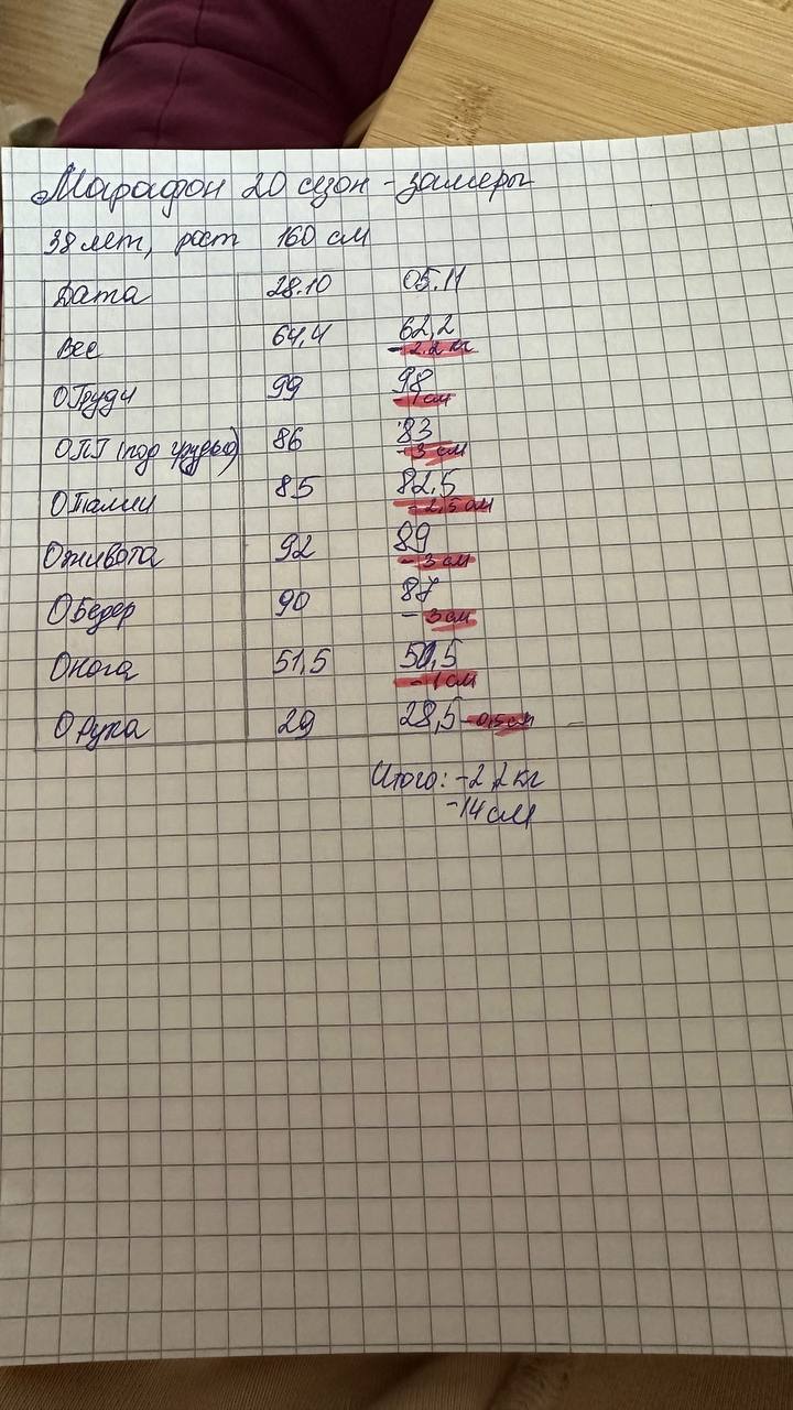Поэтому результат -2,2 кг и -14см в общих объемах считаю отличным! Особенно удивили бедра, они-то куда худеют?!😄