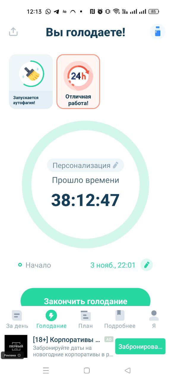 Здравствуйте , ещё голод ) вес -2.7( 114.1-111.4) , грудь -5см, живот -1см. Есть не хочется, хотелось вечером 🙈. Самочувствие отличное )