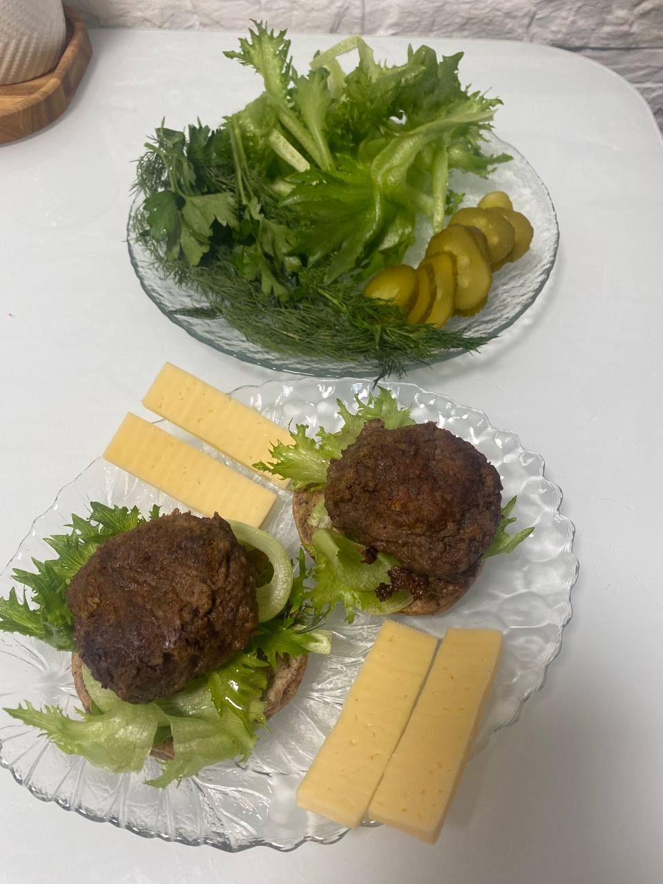 На тарелочках: зеленая зелень. Соленый огурец собственного изготовления. Сыр. Котлеты из говядины мираторг, и кето булочки из псиллиума и яиц…..увидела у Ольги на странице рецепт и не удержалась, получились не красивые, но это не важно)))))
