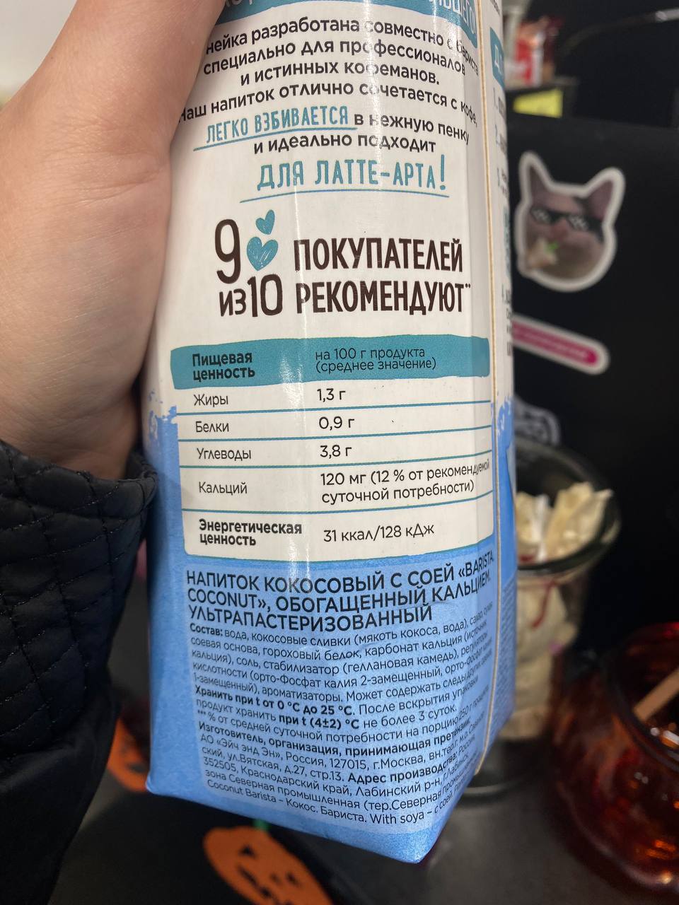 В 12:00 кофе из кофейни с кокосовым молоком