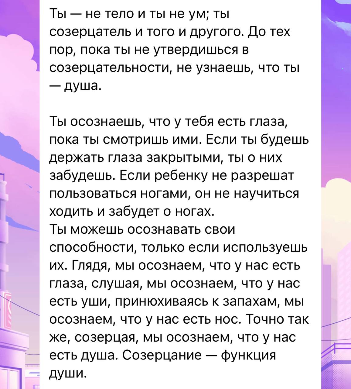 Жить в моменте это находиться в позиции созерцателя. В этом счастье и радость. Ум с потоком мыслей нас уводит от нахождения в моменте. Мы постоянно в тревогах, страхах и страданиях.